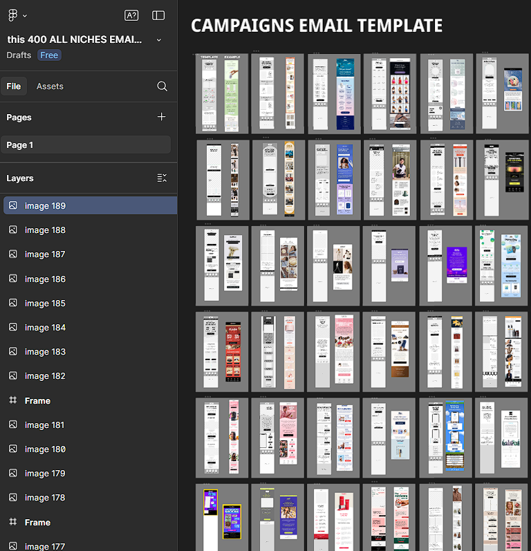 The best email templates I’ve used! Each one comes with examples that show you exactly how to design your emails. It feels like having a step-by-step guide inside Figma