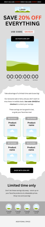 Upload as an image block to Klaviyo, Mailchimp, Omnisend or other similar email marketing platforms.