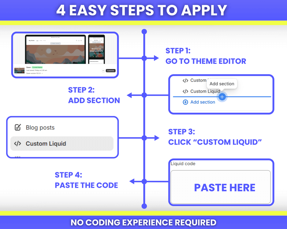 Customize your store, boost conversions, and launch faster no coding skills or apps required.